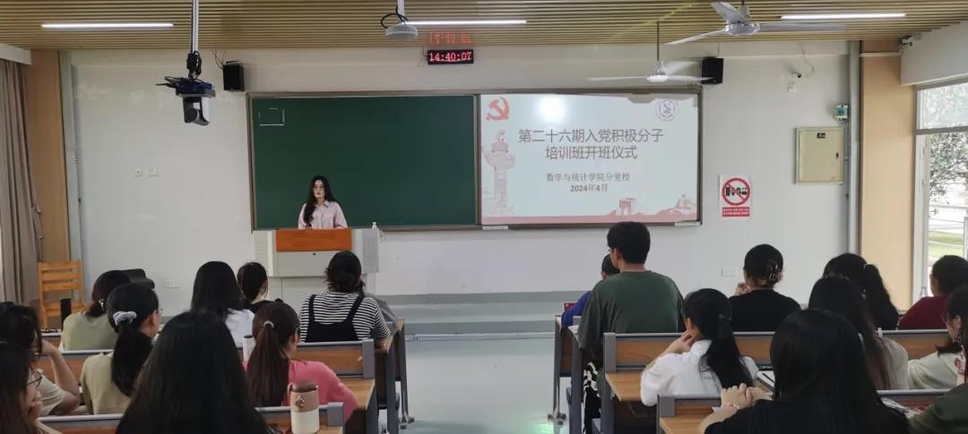 分党校于砺志楼130教室举办第二十六期入党积极分子培训班开班仪式暨第一次党课培训,院党委副书记胡海智、本期培训班领队黄艺佳及全体学员参加本次活动。