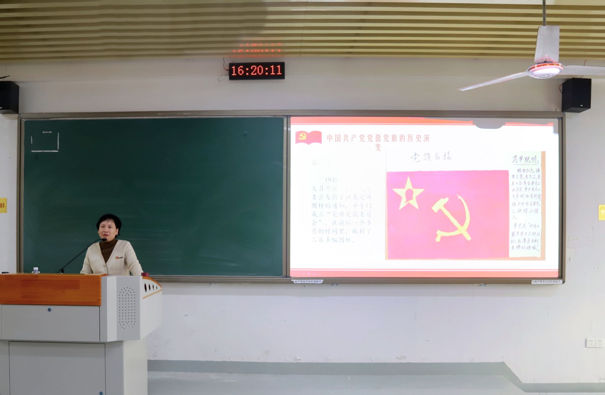 11月30日下午,校党委组织部副部长徐志红老师从“中国共产党党徽党旗的历史演进、中国共产党党徽党旗的规范使用”两个方面展开讲述。徐志红老师强调,党旗代表人民,象征着中国共产党的先锋队性质,承载着人民群众对革命的美好憧憬。她要求每位入党积极分子正确认识和对待党徽党旗,维护其尊严,杜绝在党徽党旗上添加文字和图案等不当行为,以实际行动为党徽党旗增光添彩。