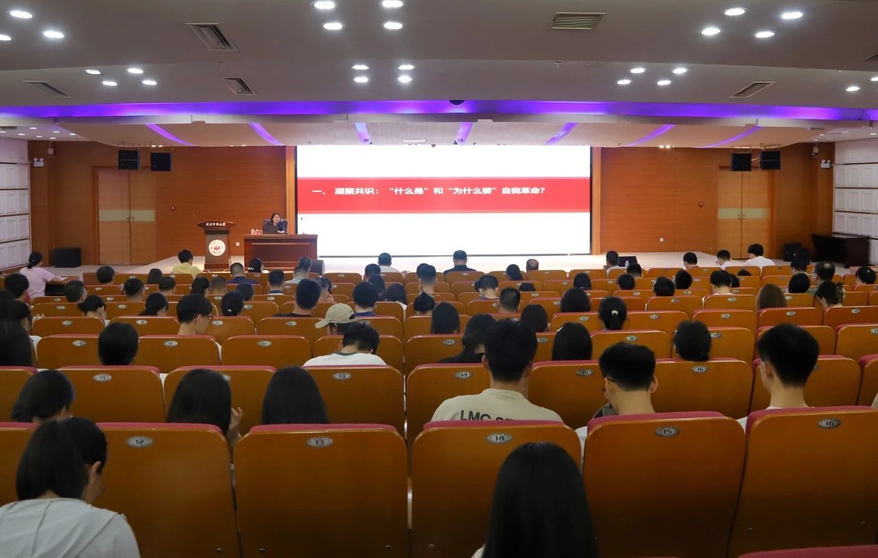 特邀马克思主义学院鄢姿副教授作题为《中国共产党自我革命的百年历程与当代实践》的专题党课。鄢姿副教授围绕“凝聚共识:‘什么是’和‘为什么要’自我革命”“百年历程:六次最具历史意义的自我革命”“成功密码:以党的自我革命引领社会革命”等方面,通过严谨的理论阐释与鲜活的历史案例,深入剖析党的自我革命的深刻内涵与重大意义,系统梳理了党在不同历史时期推进自我革命的光辉历程和宝贵经验。她强调,党的自我革命是党永葆生机活力的关键所在,广大党员要深刻把握自我革命的时代要求,明确党员在新时代的责任担当。