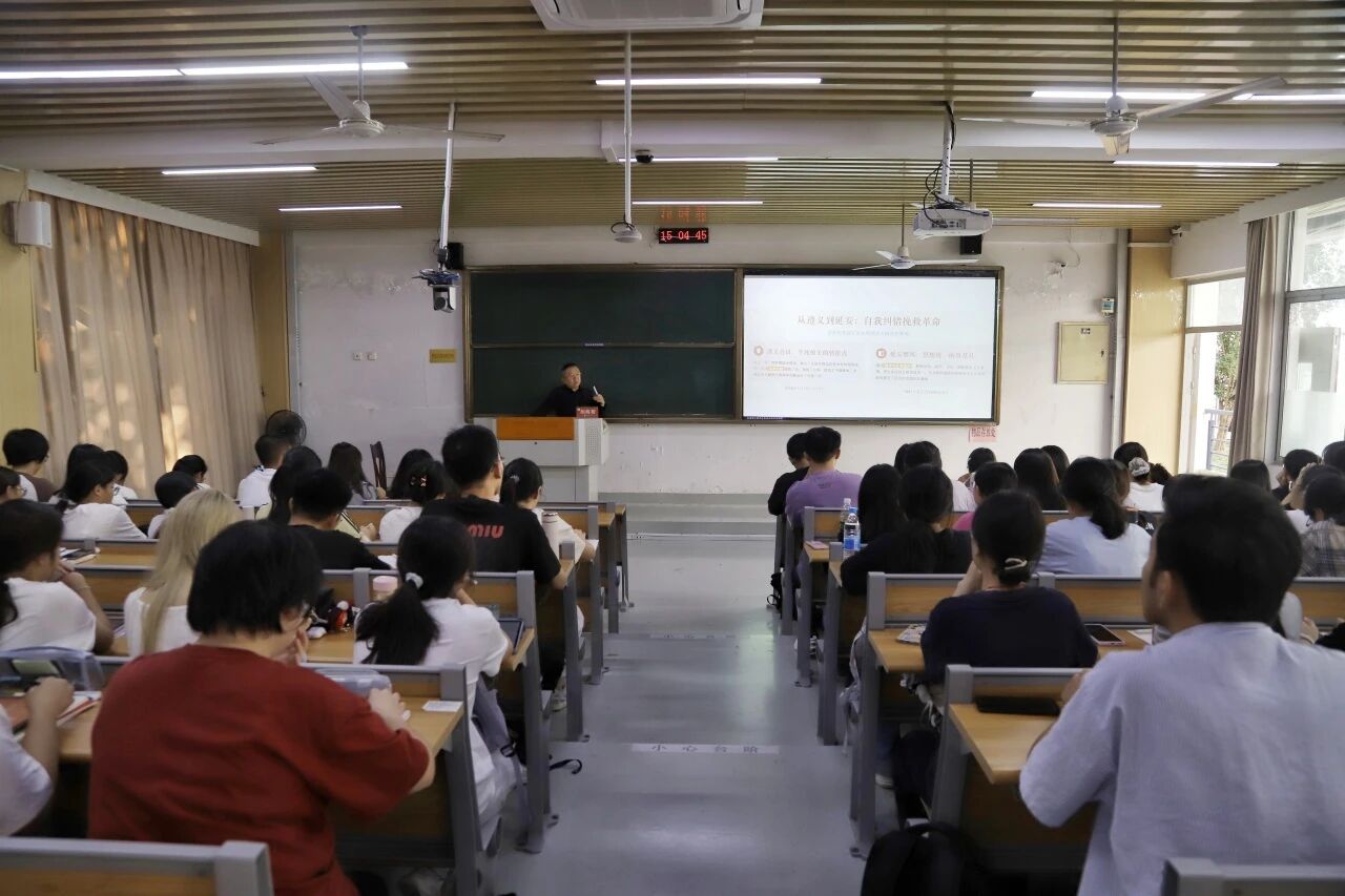党委副书记胡海智老师在砺志楼130教室,为入党积极分子培训班学员讲授题为《党的自我革命:第二个答案的时代阐释——学习习近平总书记关于党的自我革命的重要思想》的专题党课。