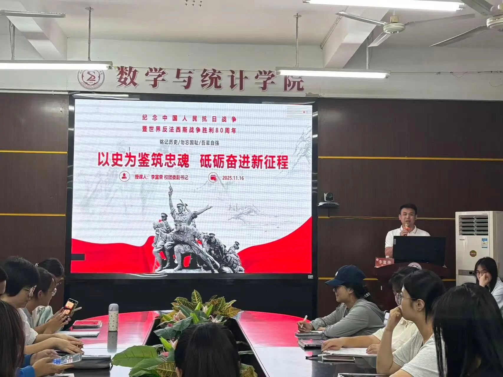 随后,李富荣系统阐释了伟大抗战精神中“天下兴亡、匹夫有责的爱国情怀”“视死如归、宁死不屈的民族气节”“不畏强暴、血战到底的英雄气概”等核心内涵,结合当前国际形势与时代背景,强调传承抗战精神对新时代青年的重要意义。他指出,抗战历史深刻启示我们,坚持党的领导是胜利的根本保证,人民群众是力量源泉,民族团结是坚实基础,维护和平正义是永恒追求。