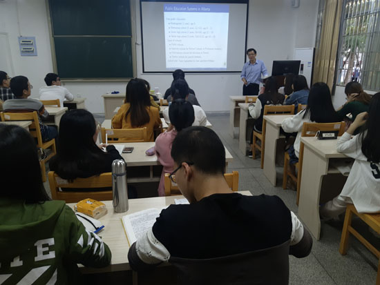 邀请,11月21日下午,加拿大阿尔伯塔大学韩斌教授在砺志楼105作了《Canadian Universities and Research Opportunities》的报告。相关师生聆听了此次报告,报告由吴晓峰老师主持。