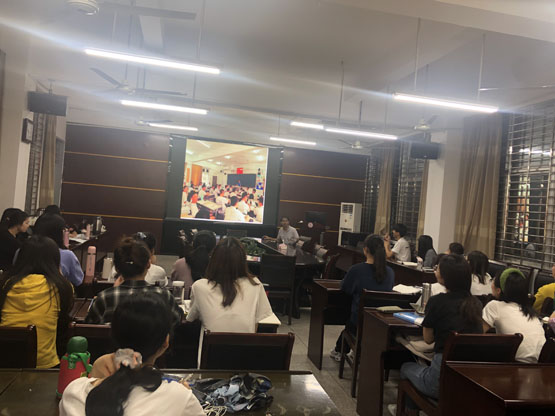 报告中,林新建老师分为四个部分来阐述他的主题:第一部分是什么是教育科研观,第二部分是为什么要有教育科研观,指出教师必须要有研究数学、学生、教学的意识,还要会反思、创新、做实践的研究者;第三部分是树立正确的教育科研观,林老师以自己多年的教学经验与教学经历总结了八大观,其中包括学生观、学习观、课程观、教材观、合作观、反思观、听课观、教研观;第四部分是走好精彩为师路。在介绍过程中,林新建老师多次分享了自己和学生的课堂照片和生活小故事,令在场的师生收获满满,并对林新建老师的教学方法称赞连连。报告结束后,在座的师生就相关研究问题进行了探讨和交流。