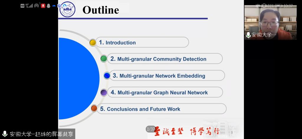 邀请,12月19日上午,安徽大学赵姝教授在腾讯会议作了题为《基于粒计算思想的网络分析研究》的报告,报告由廖淑娇副教授主持,相关师生聆听了此次报告。