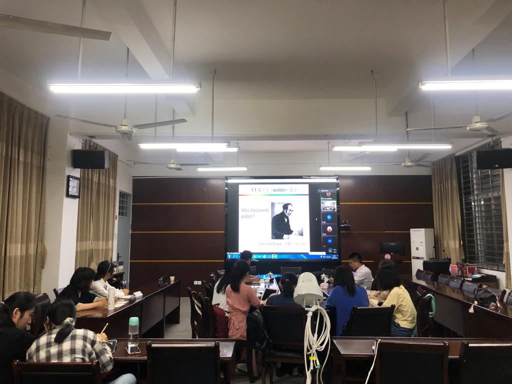 邀请,4月29日晚上,北京师范大学王灯山教授在腾讯会议作了题为《玻色-爱因斯坦凝聚中的可积与近可积系统及其物质波解》的报告。相关师生在砺志楼114聆听了此次报告,报告由樊方成副教授主持。
