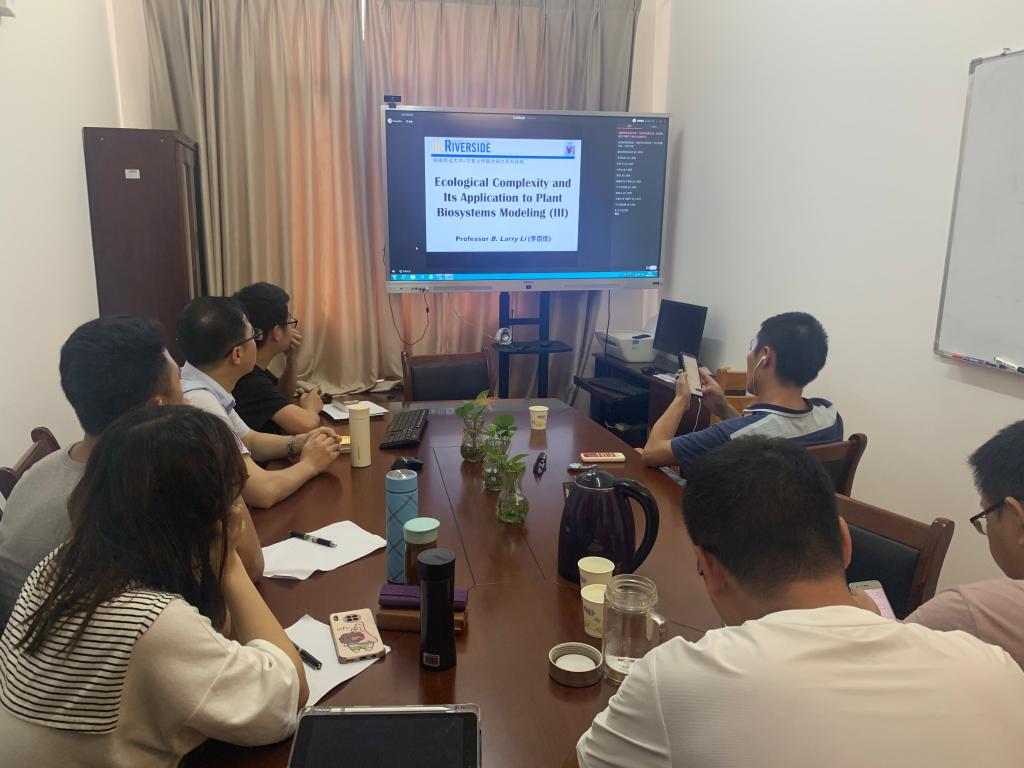 邀请,5月19至21日下午,美国加州大学河滨分校数学与理论生态学教授李百炼在QQ群作了题为《Ecological Complexity and Its Application to Plant Biosystems Modeling》的系列报告,相关师生在8号楼404室聆听了此次报告,报告由吴晓锋教授主持。
