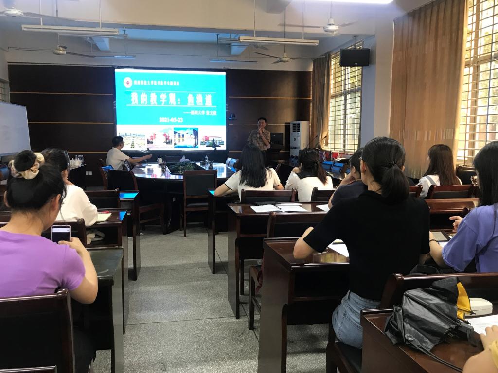 邀请,5月23日,深圳大学张文俊教授在砺志楼114作了题为《鱼渔道——我的教学观》的报告。相关师生聆听了此次报告,报告由李建喜副院长主持。