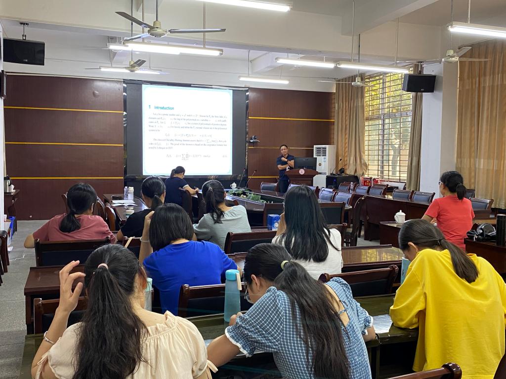 报告中,曹炜教授在报告中从不同角度解释了p-adic数值问题,向老师同学们科普了有限域中数论的相关问题,以及向同学们展现了研究成果,使同学们对数论有了更深刻的了解。最后,曹炜教授还提及了数论在编码领域以及密码领域的广泛运用。报告结束后,在座的师生就相关研究问题进行了探讨和交流。