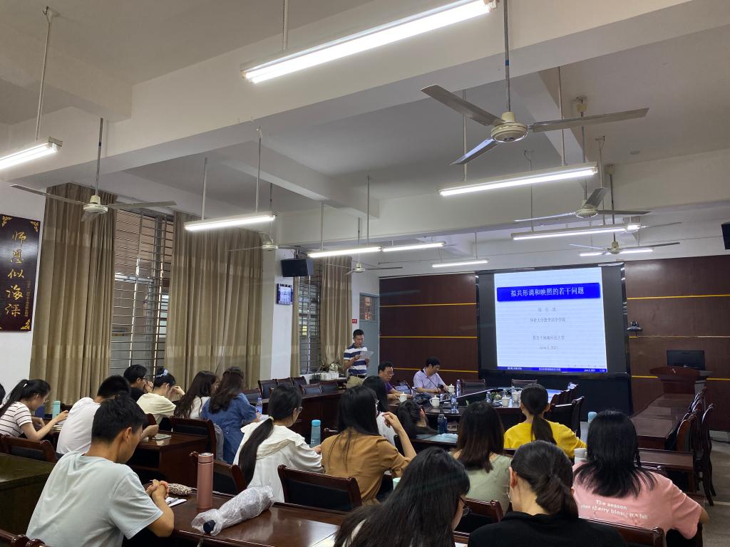 报告中,陈行堤教授简述拟共形映照的起源、拟共形映照与偏微分方程和奇异积分等理论的联系;介绍加权调和拟共形映照的研究进展,拟共形映照与Schoen猜想和Iwaniec猜想等相关研究问题。报告结束后,在座的师生就相关研究问题进行了探讨和交流。