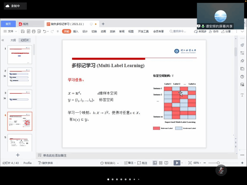 邀请,11月6日上午,浙江海洋大学谭安辉博士在腾讯会议作了题为《基于样本粒辨识的缺失多标记学习方法》的报告。相关师生聆听了此次报告,报告由李进金教授主持。