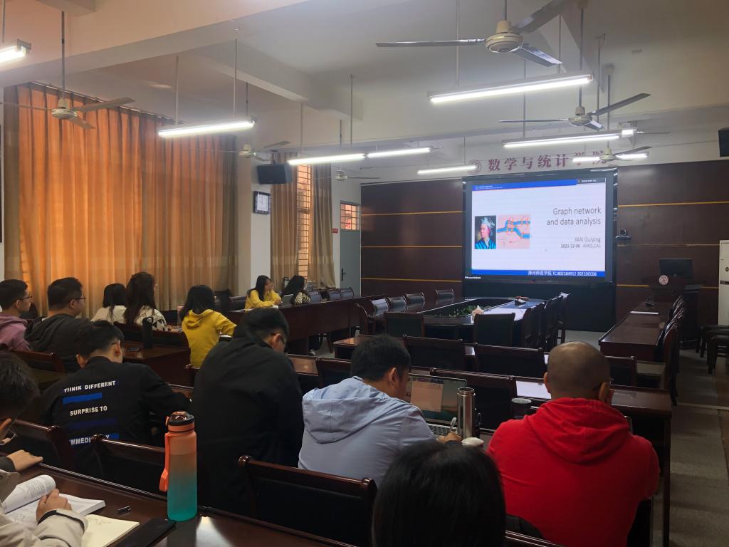 邀请,12月6日上午,中科院国家数学与交叉科学中心副主任闫桂英研究员在腾讯会议作了题为《Graph network and data analysis》的报告。相关师生聆听了此次报告,报告由赖春晖教授主持。