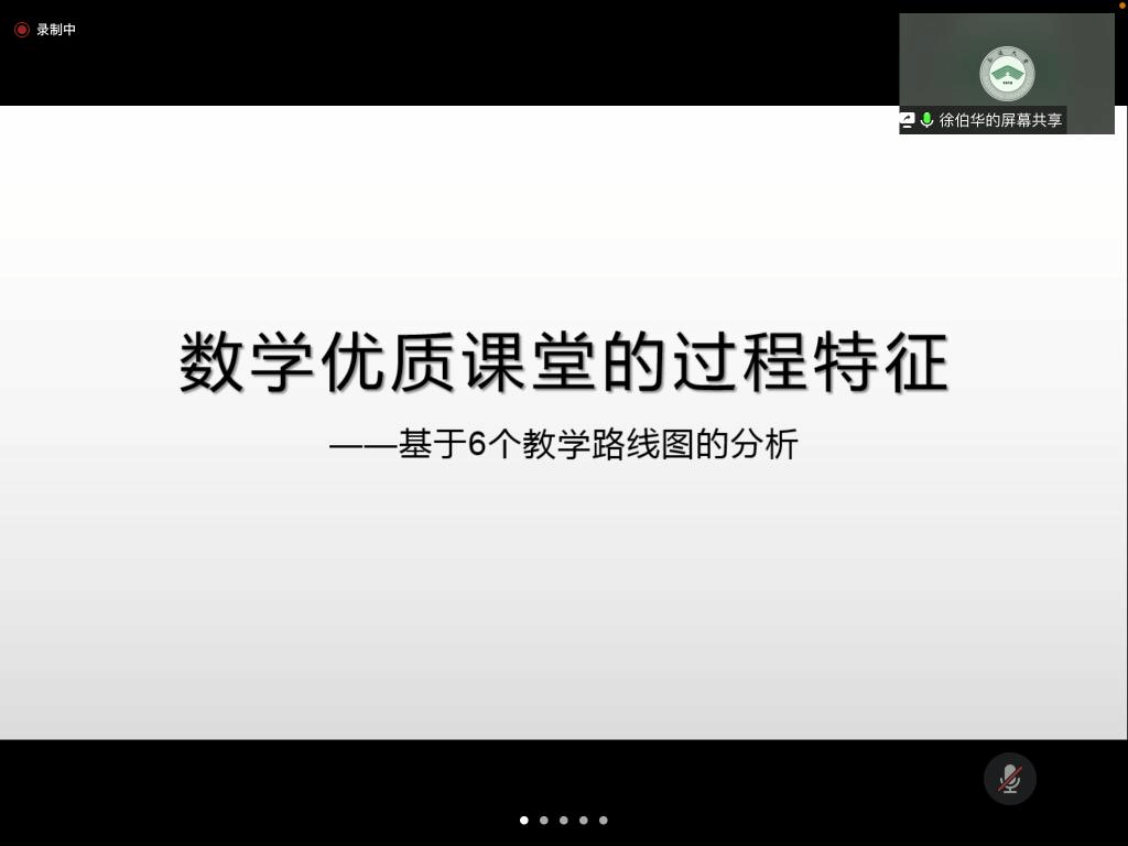 邀请,12月14日晚上,南通大学徐伯华副教授在腾讯会议作了题为《数学优质课堂的过程特征》的报告。相关师生聆听了此次报告,报告由周仕荣教授主持。