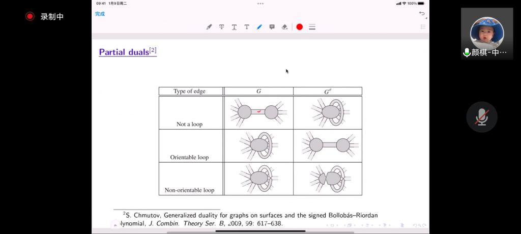 邀请,6月9日上午,中国矿业大学颜棋博士在腾讯会议作了题为《Partial-dual genus polynomials and signed intersection graphs》的报告。相关师生聆听了此次报告,报告由温泳铭老师主持。