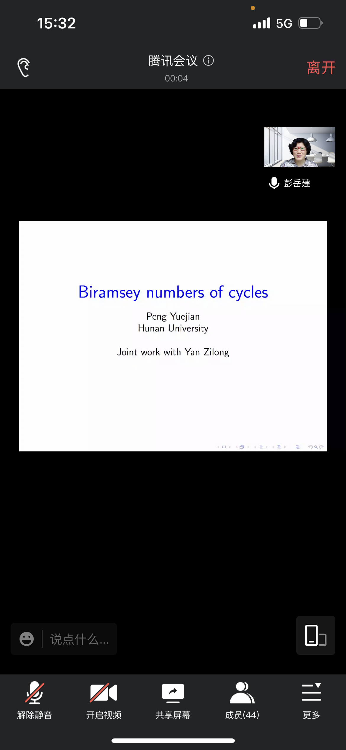 邀请,6月29日下午,湖南大学彭岳建教授在腾讯会议作了题为《Bipartite Ramsey numbers of cycles》的报告。相关师生聆听了此次报告,报告由赖春晖老师主持。