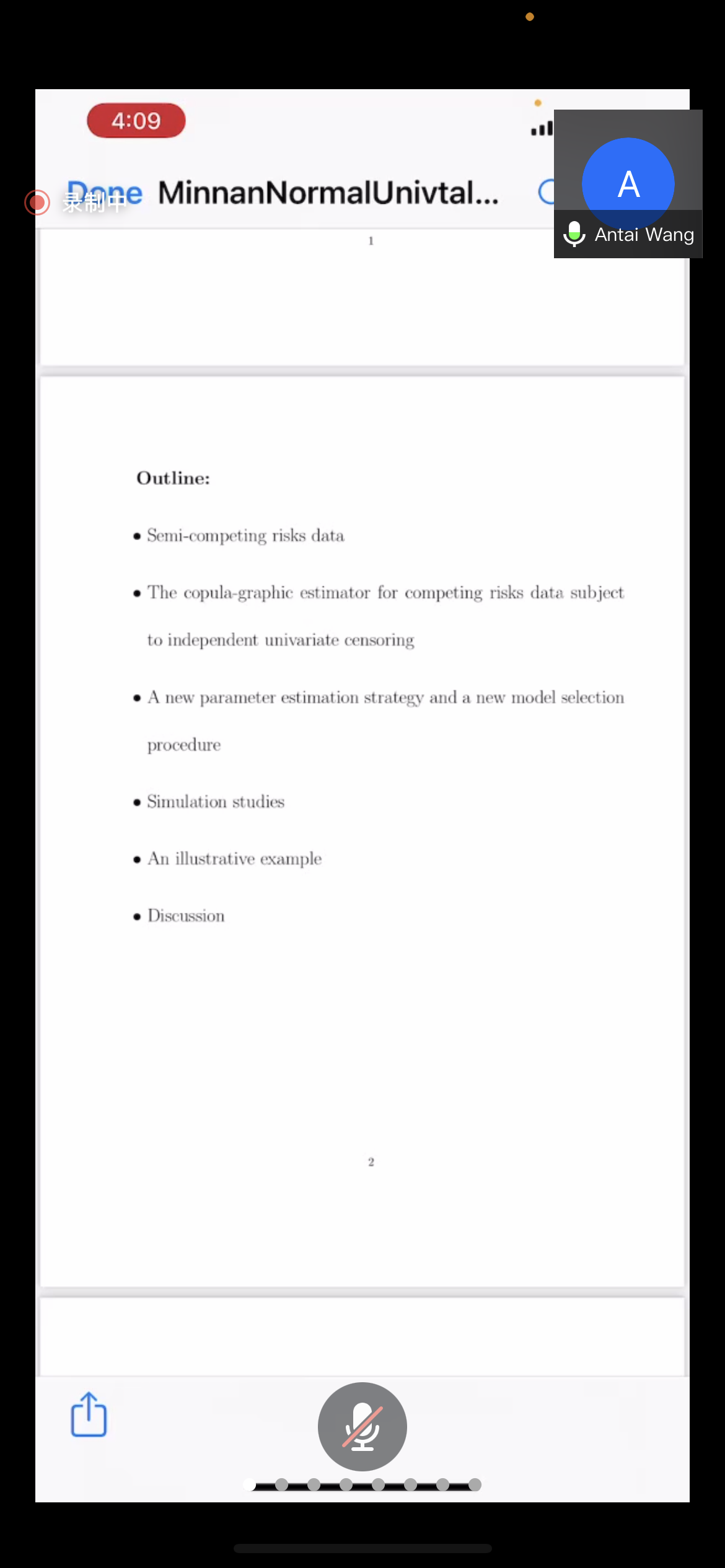 和粒计算重点实验室的邀请,7月31日下午,美国新泽西理工大学王安泰教授在腾讯会议作了题为《Analysis of semi-competing risks data using copula models》的报告。相关师生聆听了此次报告,报告由施建华老师主持。