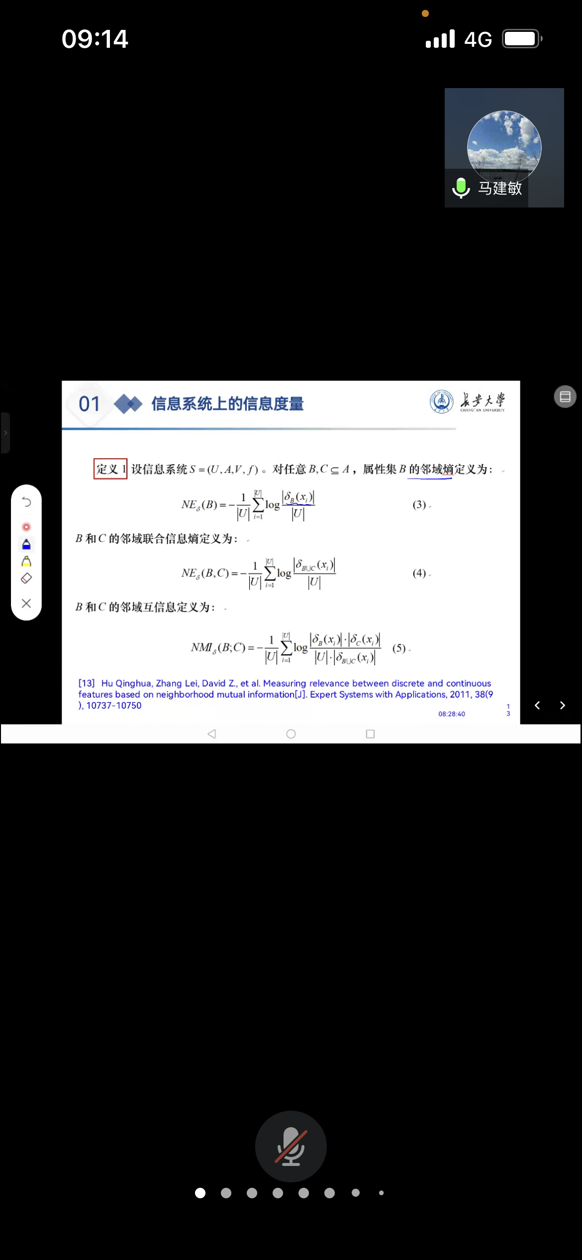 邀请,9月17日早上,长安大学马建敏教授在腾讯会议作了题为《基于邻域互信息的高维时序数据的特征选择》的报告。相关师生聆听了此次报告,报告由李进金老师主持。