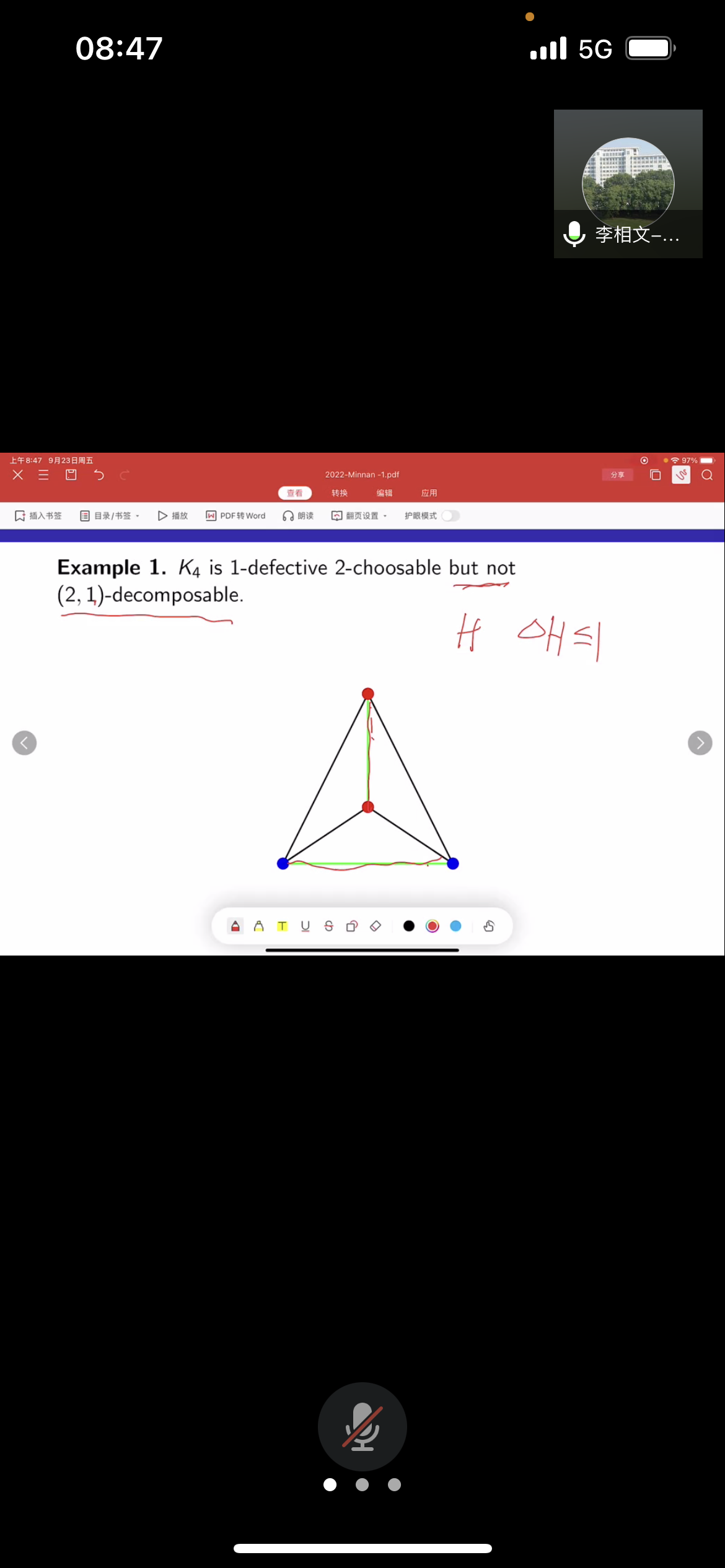 邀请,9月23日早上,华中师范大学李相文教授在腾讯会议作了题为《Decomposing graph of nonnegative characteristic with some forbidden subgraphs》的报告。相关师生聆听了此次报告,报告由卢福良老师主持。