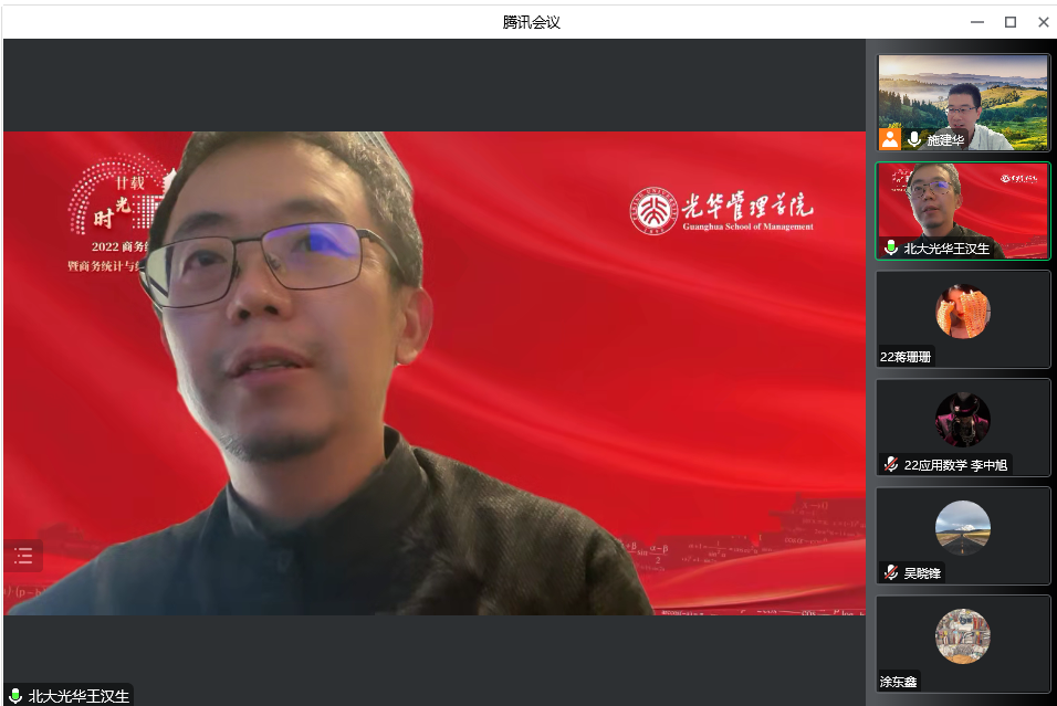邀请,10月5日下午,北京大学王汉生教授在腾讯会议作了题为《图像的数据分析和应用》的报告。相关师生聆听了此次报告,报告由施建华老师主持。