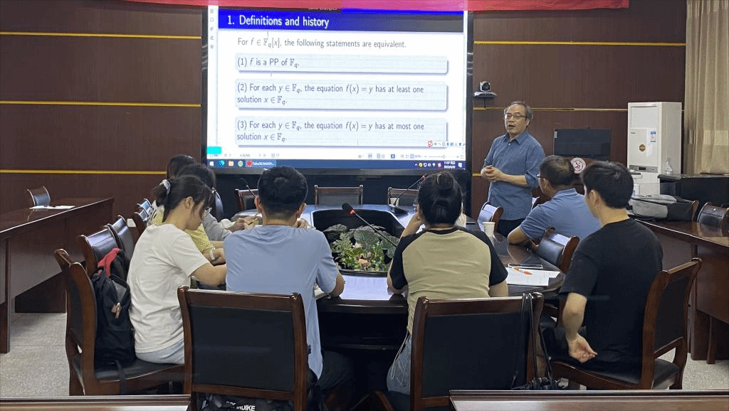 报告中,袁平之教授主要介绍提出的多项式为PP的新的局部准则。使用所发展的方法给出了几种多项式为PP的充要条件,并给出了它们的组成逆。报告结束后,在座的师生就相关研究问题进行了探讨和交流。