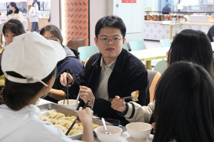 一锅锅饺子煮熟出锅,热气氤氲、香气四溢,再搭配上软糯香甜的汤圆,一口下去暖意直达心底。大家围坐在一起分享美食,畅谈家乡的冬至习俗,交流成长与感悟。一句句关切的话语、一个个温暖的笑容,让远离家乡的勤工学子们深深感受到“家”的温暖。