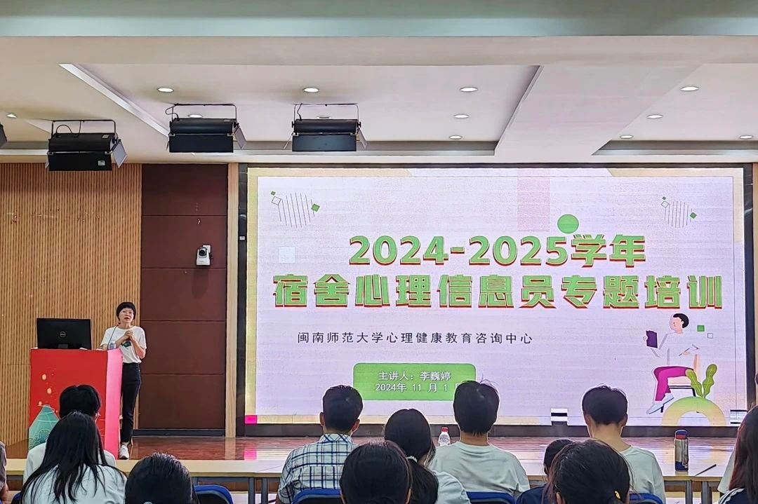 心理自助中心于11月1日晚在砺志楼120教室举办宿舍心理信息员培训活动,本次培训由心理自助中心指导老师李巍婷主讲,各年级宿舍心理信息员参加本次培训。