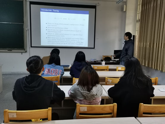 报告中,刘旭副教授首先介绍了研究框架,概述了前人在相关研究中做出的工作。接着给出了quantile模型,具体解释了模型中相关变量的含义,基于已有的方法进行检验。然后介绍了广义渐进性的定理,提出了将数据分为两部分以便于进行变量选择。最后,进行了总结,展示了研究成果。报告结束后,在座的老师和学生就相关研究问题进行了探讨和交流。