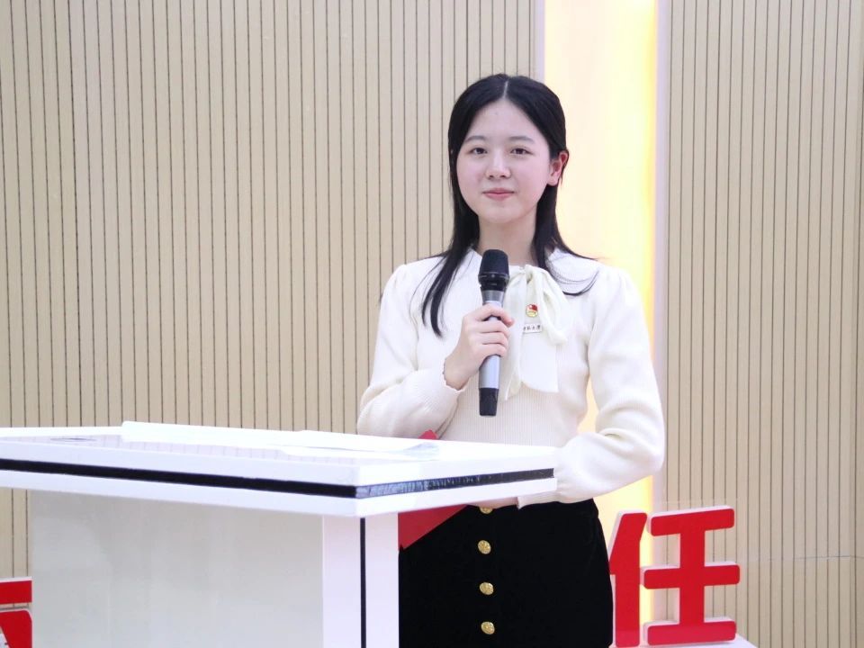 会上,班级团支书戴林婧从今年九月开展的全国教育大会出发,围绕“教育家精神”这一主题,结合新时代中国特有形势与“师范专业”这一特色,带领团支部深入解读学习了“理想信念” 、“道德情操”等六方面教育家精神的重要精神内涵,引领团支部成员分享交流了自身在学院举办的志愿服务中的感悟以及教育家精神的感人故事。