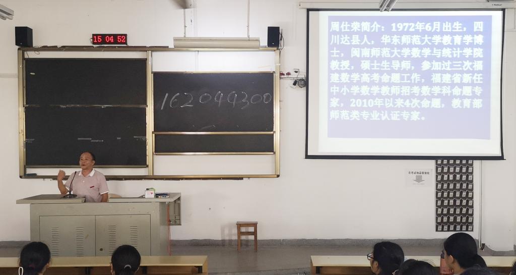 9月8日下午,学院开展数学与应用数学(师范)、数学与应用数学(数理金融方向)、信息与计算科学、统计学专业的介绍讲座,学院专业任课教师周仕荣、李气芳、王晓峰、施建华分别担任主讲人。学院教师从专业发展历史及现状、专业培养方案、师资力量、主要课程、就业方向、特色培养计划等方向介绍专业,帮助新生对所学专业有一个系统的认识。其中,周仕荣教授结合丰富的教学经验,用生动的语言提出 做“明白之人”的要求。“明白之人”是即四有教师,有理想信念、道德情操、扎实学识、仁爱之心,同时教导学生培养“教学素养”,学数学要做好吃苦的准备,不能“等、靠、记”,要学会思考、体验和表达。