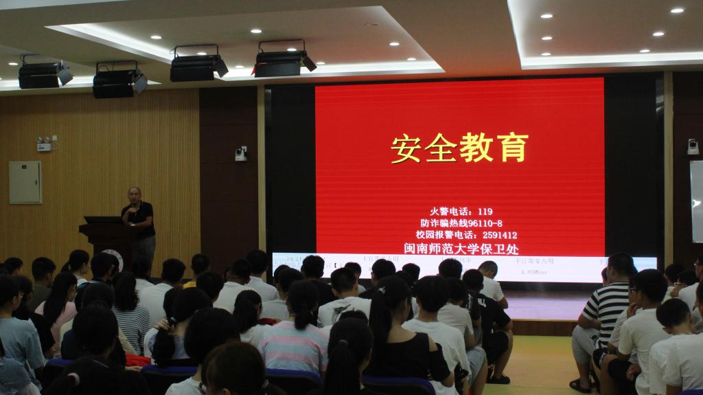 近年的火灾案例,着重强调宿舍的消防安全。火灾具有多发性、多变性、瞬时性,学生可以通过观看灭火器的使用方法,增强防火知识。此外,他指出作为大学生要提高警惕,提高防诈骗能力。常见的大学生兼职骗局有淘宝刷单、做代理、网上兼职、社会兼职等。最后他还提到,作为大学生要树立反邪教、反传销的意识,更要严格注意网上发言,避免触犯法律。