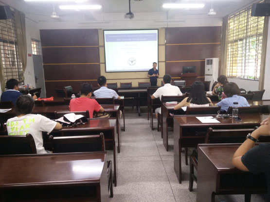 邀请,9月6号上午,浙江大学张荣茂教授在励志楼114作了《Cointegration Rank Estimation for High-dimensional:Time Series with Breaks》的报告。相关学生聆听了此次报告,报告由施建华副教授主持。