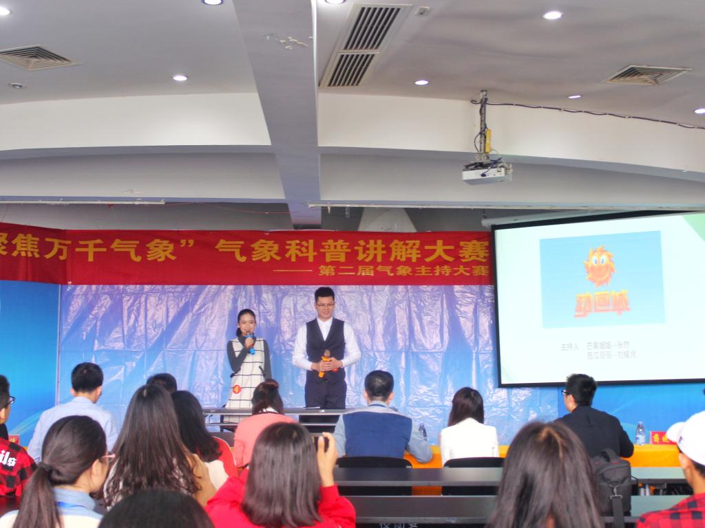 等全校45名选手参赛,自4月8日初赛起,经过初步筛选,有12名选手晋级决赛。此次决赛分为搭档主持和个人气象科普讲解两轮比赛。第一轮比赛中六组选手风格迥异,针对旅游频道、少儿频道、美食频道等栏目,选手现场搭档合作表演;中场娱乐互动环节“配音秀”点燃现场氛围。经大众评审,8位选手成功晋级第二轮。在第二轮比赛中,由参赛选手自行确定科普命题,讲解涉及台风、降雨类型、火山、飑线等气象科学知识。每位选手都展现出精湛的主持实力,给评委留下深刻的印象。