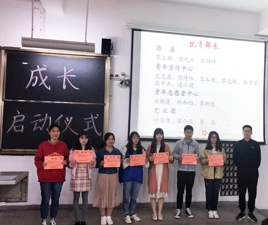 于砺志215教室成功举办“2018-2019学年下学期大学生成长成才平台启动仪式”。学院党委副书记林晓老师、院团委书记陈明老师及各年级辅导员应邀莅临现场。