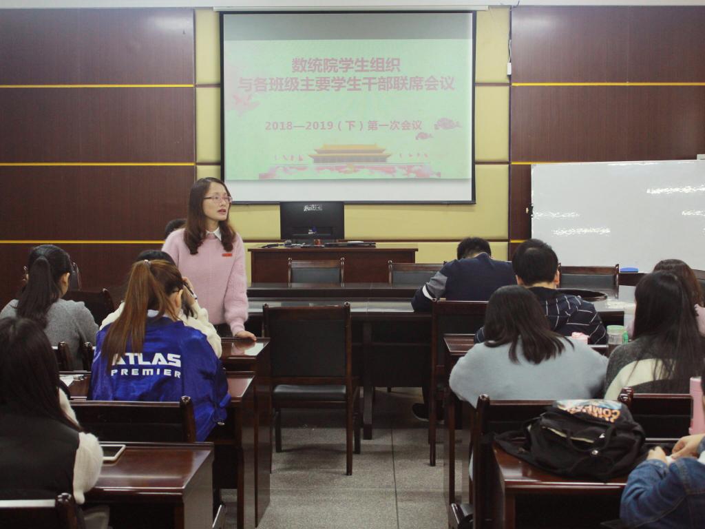 于砺志楼114召开2018-2019下学期学生组织与各班级主要学生干部第一次联席会议。学院党委副书记林晓、团委书记陈明、16级辅导员陈灿滨及50多名学生干部参加了本次会议。