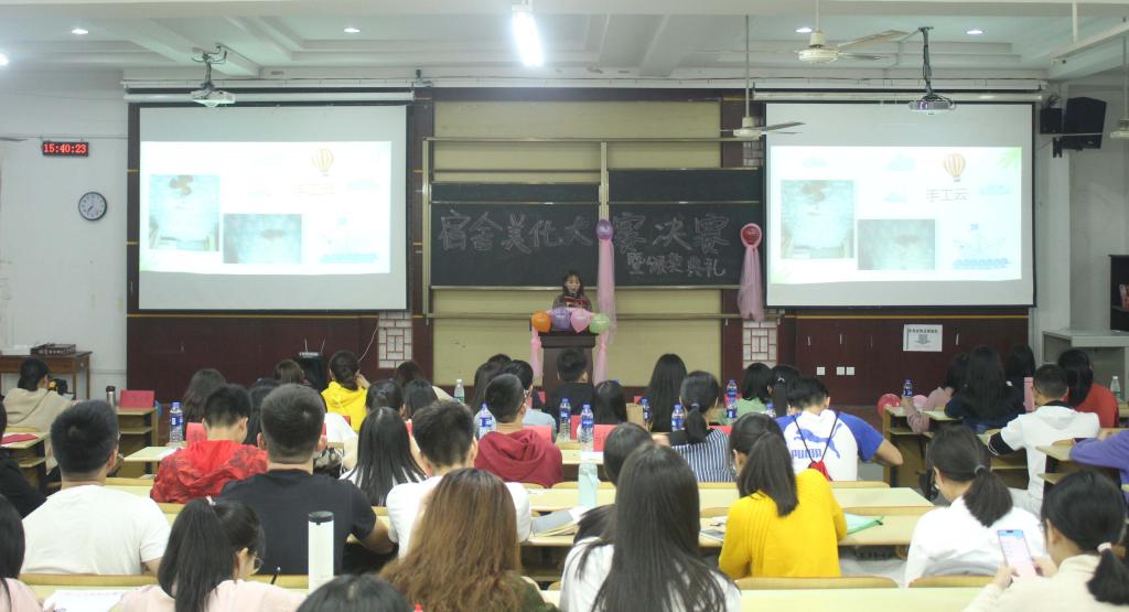 在砺志楼120举办了“喜迎甲子学府校庆,共筑一八宿舍风采”宿舍美化大赛决赛暨颁奖典礼。学院辅导员、各大学生组织负责人以及2017级和2018级全体学生代表出席本次活动。