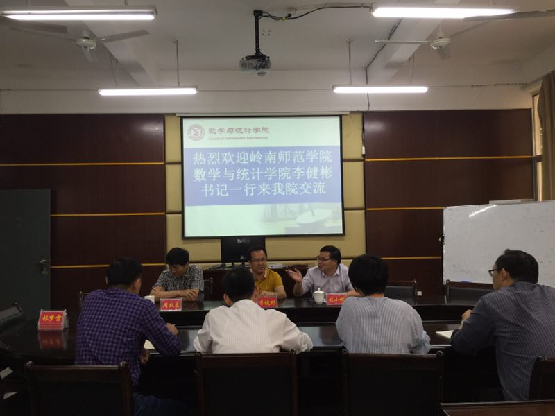 林梦雷院长对来宾的到来表示欢迎。他强调,韩国av 与岭南师范学院素有渊源,希望双方可以相互交流学习,积累有效经验,共同促进学校教育发展。随后,双方在党建科学化发展、人事制度改革、学科建设、科研管理及学位点建设等方面交流了意见,并就数学硕士学位点申报的经验做法进行了深入的讨论。
