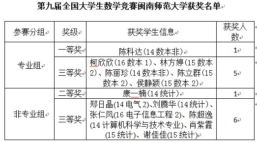 大学生数学竞赛,并在省赛中取得优异成绩。