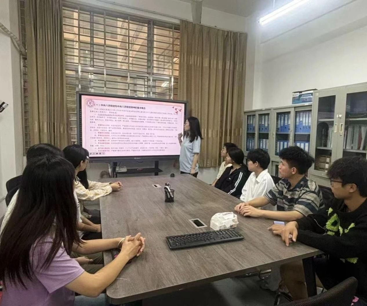 学生开展青马干部进学生社区宣讲活动。杨老师从党风廉政建设全局出发,系统讲解中央八项规定的发展背景,同时结合高校实际,列举多起学生干部违规使用经费等真实案例,生动揭示违反中央八项规定精神在校园中的具体表现,敲响纪律警钟。杨老师引导同学们筑牢纪律防线,号召学生干部在班级事务管理、活动组织中坚持公开透明、以身作则,推动中央八项规定精神在校园学习生活中走深走实。