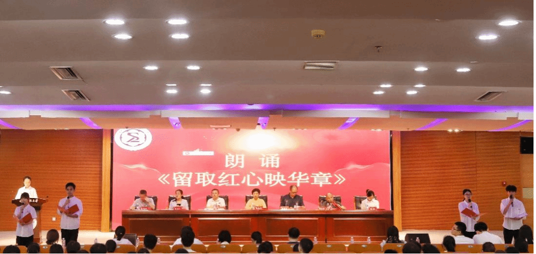 会前,师生一同欣赏诗歌朗诵《留取红心映华章》。随后,大会在激昂澎湃的国歌声中拉开序幕。