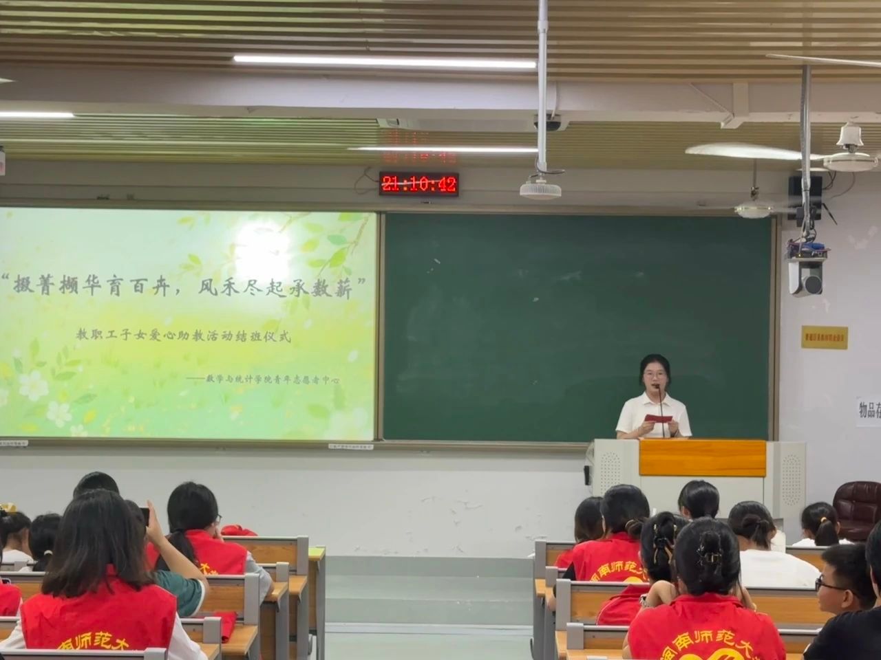 仪式伊始,爱心助教基地管理人员对本学期的活动作出总结汇报,向授业解惑的助教老师和孜孜不怠的同学们致以崇高的敬意和诚挚的感谢。