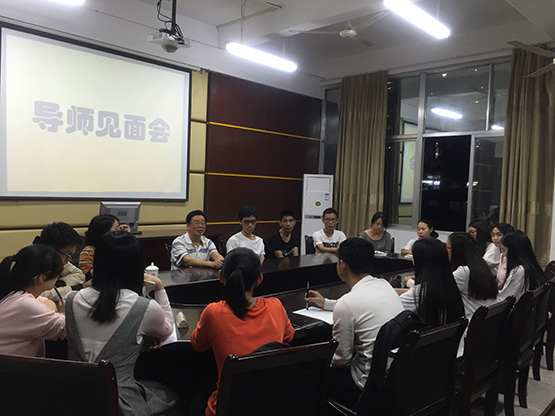 砺志楼114会议室,与他所指导的本科生进行交流。