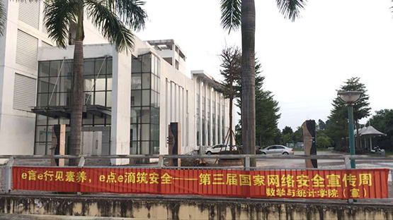 积极响应,线上线下相结合,紧紧围绕“网络安全为人民,网络安全靠人民”的主题开展各项宣传活动。LED显示屏点亮活动主题“网络安全为人民,网络安全靠人民”,并以“e言e行见素养,e点e滴筑安全”横幅标语开启网络安全宣传第一步。
