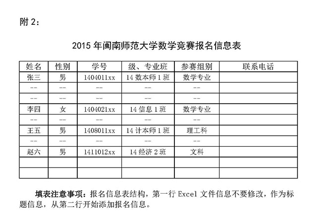 附件2:2015年韩国av 数学竞赛报名信息表.xls