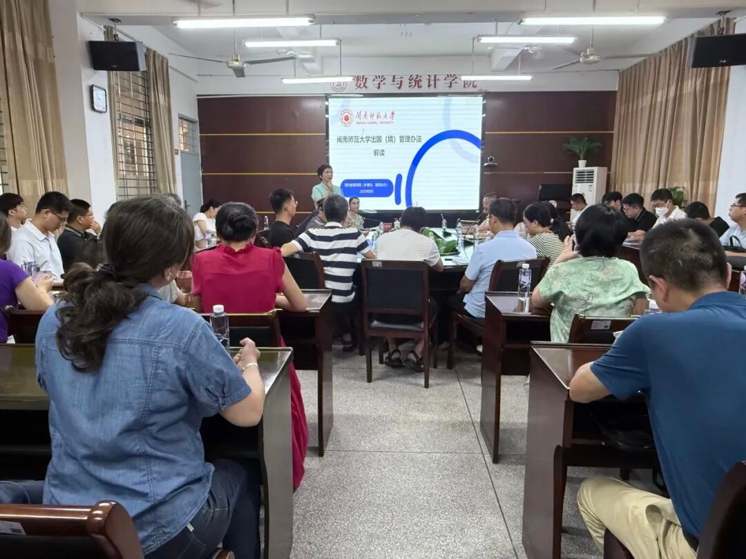 在砺志114会议室召开全院教职工大会,海外教育学院副院长李雪芬受邀出席,数统学院领导班子及全院教职工参加会议,会议由院长黄韩亮主持。