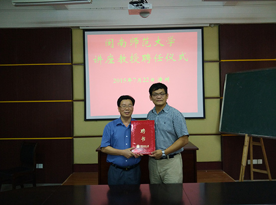 聘请为讲座教授,7月23日上午,李进金校长出席聘任仪式并为陈建伟教授颁发聘书。