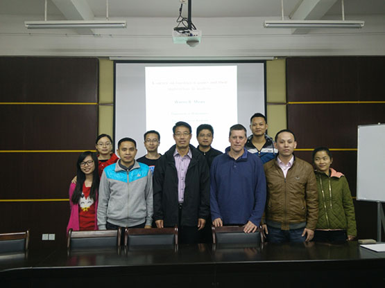 本次访问中,Warren Brian Moors教授做了“An elementary proof of James’ characterization of weak compactness”、“Fixed point theorems and applications”和“A survey on topological games and their applications in analysis”的专题学术报告。Warren Brian Moors教授还与拓扑学及其应用校级创新团队交流了在拓扑学及其应用的相关成果,并对相关问题进行深入的探讨,同时提出了不少期待解决的问题,这些均是近期国内外拓扑学家关注的热点课题。另外,Warren Brian Moors教授还对我们团队建设提出了很多宝贵的意见。 大家一致认为Warren Brian Moors教授的访问对我们了解国际上拓扑与分析研究的最新进展、核心问题及其研究方法, 引导年轻的拓扑学工作者进入学科前沿, 扩大我国拓扑学及其应用的国际影响等都将具有重要的意义,同时对我们团队成员从事科学研究起到了良好的推动作用。