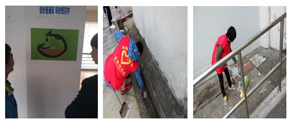 3月22日上午9时,13统计班志愿者们在砺志楼各个楼层的用水设施进行了检查,并在旁边张贴了班级自制的温馨提示小标语,还对砺志楼附近的卫生死角进行了清理。