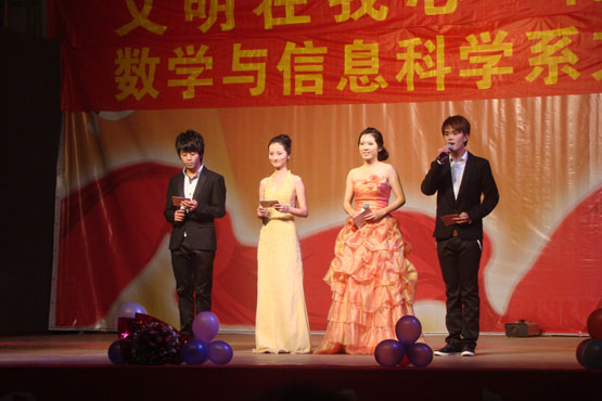 12月3日晚7:00,由数学与信息科学系团委主办、系学生会承办的以“文明在我心,礼仪伴我行”为主题的大型晚会在球类馆隆重举行。系党总支书记徐志怀教授、团委书记林贵东老师、系辅导员老师和全系1000多名同学一起观看晚会。