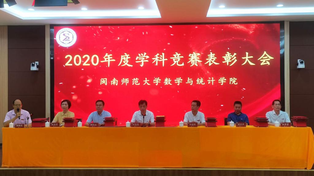 2020年学科竞赛表彰大会。校党委副书记钟发亮,学科建设与研究生工作处处长李建辉,学生工作处处长郑炎山,教务处副处长胡世荣,学院党委书记陈晶莹,学院院长林梦雷,学院副院长黄韩亮、李建喜、胡海智以及学院学生代表、教师代表出席大会。会议由黄韩亮副院长主持。