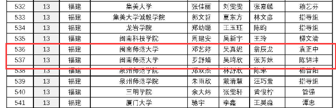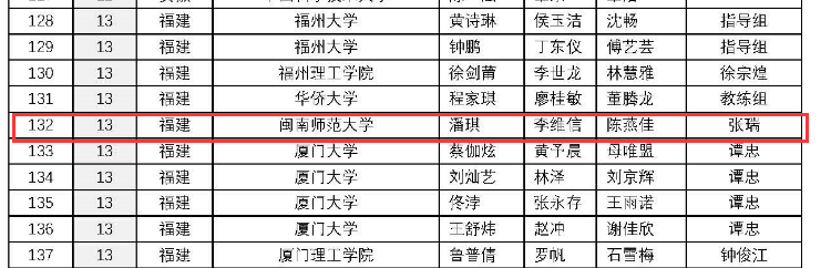 获得全国一等奖1队,全国二等奖2队,分别是由张瑞老师指导的陈燕佳、李维信、潘琪团队;由袁正中老师指导的吴真妮、翁辰龙、邓艺婷团队和由陈锦坤老师指导的吴琦欣、张芳妹、罗舒婧团队。