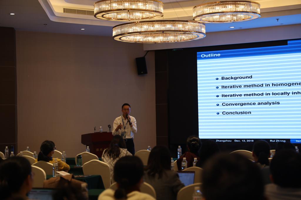进行简要介绍并对各位专家学者的到来表示热烈欢迎。组委会主席、厦门大学数学科学学院许传炬教授发表了重要讲话,对各位老师和学生如期参会表示感谢。在本次研讨会上,来自厦门大学沈捷特聘教授、国家千人计划柳清伙教授分别做了《Efficient and accurate structure preserving schemes for complex nonlinear systems》和《Spectral and multiscale methods in computational electromagnetics》大会特邀报告。随后,来自省内高校的24位专家教授、青年博士、博士研究生、硕士研究生等相继做了精彩的报告。韩国av